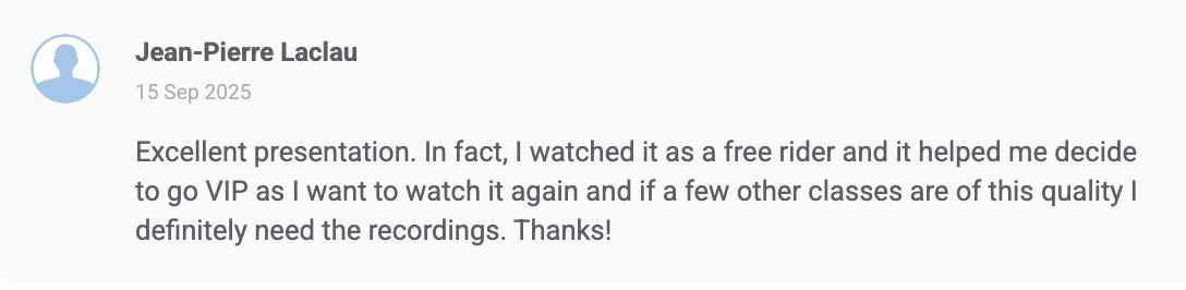 These are comments on individual classes from the VIP Member Area: