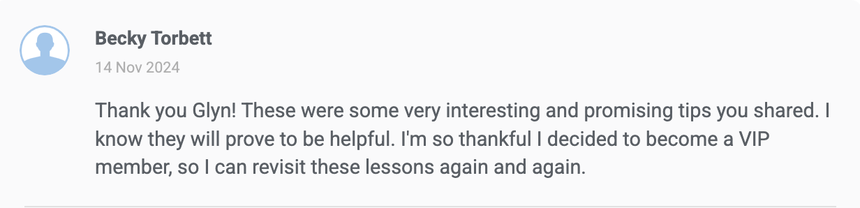 You can watch each session as many times as you like and get exclusive extras such as session notes, bonus files and videos, and more!